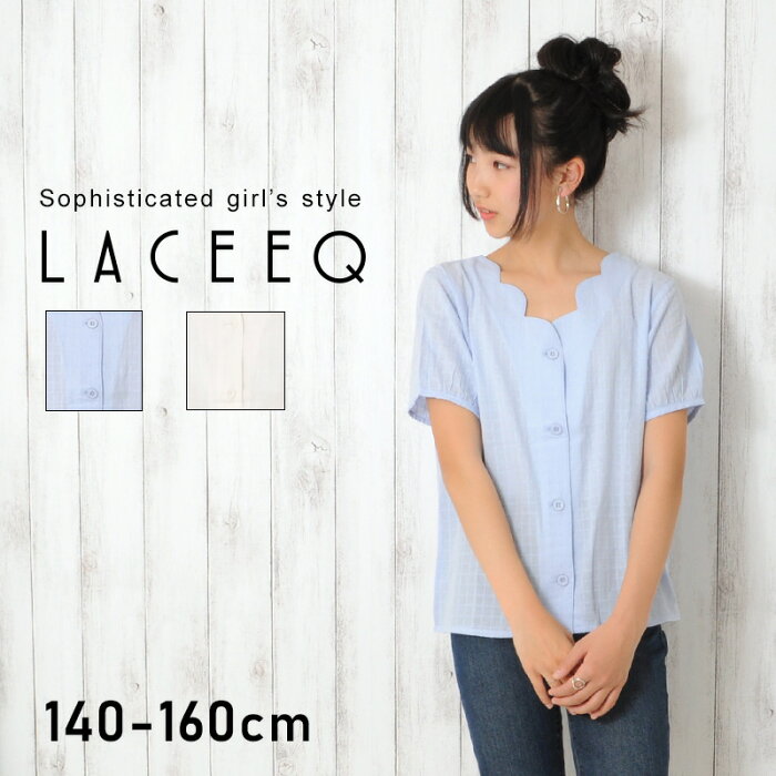 【セール】【LACEEQ】スカラップ衿ブラウス[2色展開] 子供服 女の子 カジュアル キッズ ジュニア 半袖 襟なし XS S M 140cm 150cm 160cm ラシーク 春夏