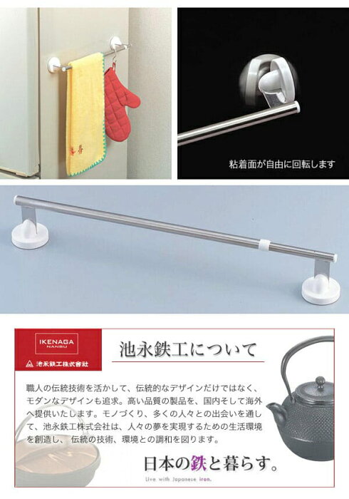 サイズ 50×(405〜650)×68mm 商品情報 粘着面が自由に回転します 補助板付 材質 本体:18-8ステンレス プラケット:ABS樹脂 キャップ:ナイロン樹脂 ポリエチレン 耐荷重 約1.2kg 広告文責 株式会社リブレ/03-5876-8107 【池永鉄工】