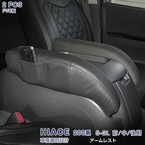 【お買い物マラソン10】トヨタ ハイエース 200系 1型/2型/3型/4型/5型用 S-GL/GL アームレスト センターコンソール ポケット付き 肘置き 肘掛け 左右セット(2個) ブラック PVC材質 疲れ軽減 小物 収納可 カスタムパーツ ブラックレザー 内装 2-114 2PCS