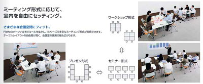 Point! フィットミー FitMe カタチを選ばないミーティングシーンへ ■製品特徴 少人数での一時的なプロジェクトから、大人数でのセミナーまで、 会議室の使われ方は様々です。