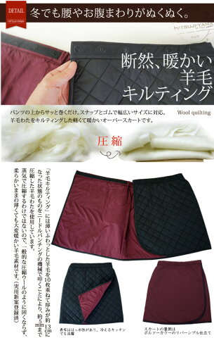 羊毛わたをキルティングした軽くて暖かいオーバースカートです。