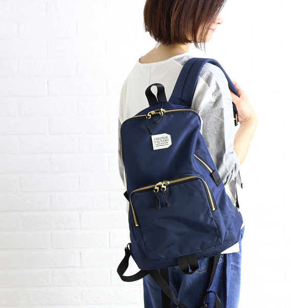 メイン収納部やフロントポケットには開閉がスムーズなゴールドの金属ファスナーを採用。